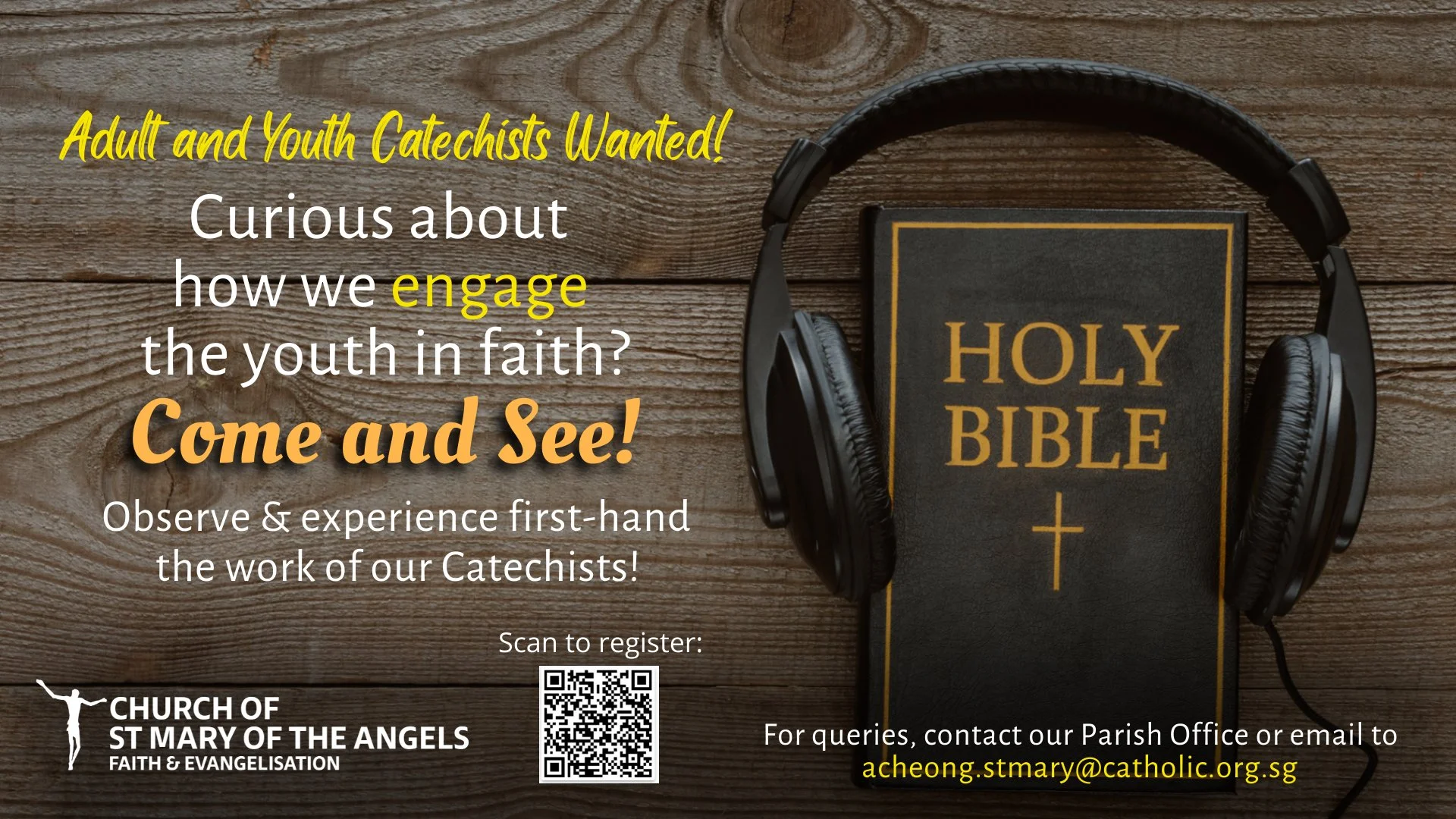 If you are interested to work with our Catechetical Ministry in imparting the faith to our youth, click below for more information about being a Catechist in St Mary’s:
